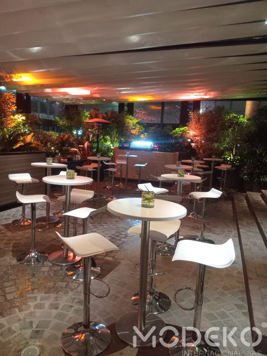 En Modeko, comprendemos el valor de la imagen corporativa en tus eventos. Te ofrecemos un extenso catálogo de alquiler de mobiliario moderno y versátil el cual se compone de salas lounge, mesas y sillas lounge, poltornas lounge, separadores de fila, mesones plegables y mucho mas para diseñar ambientes profesionales y acogedores. Gracias a nuestra calidad y servicio al cliente, nos hemos consolidado como uno de los líderes en el mercado de Bogotá y a nivel nacional. Permítenos contribuir al éxito de tus eventos con nuestra experiencia.